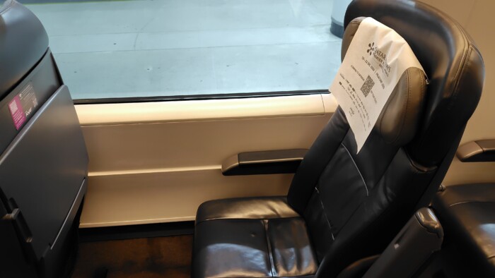 1等車の座席配置は「2列・1列」で、私は1列の座席を選択。