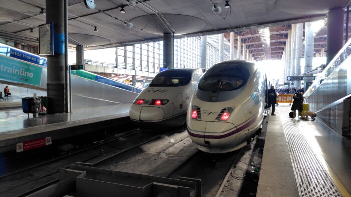 この二大都市間の移動手段として選んだのは、スペインが誇る高速鉄道・Renfe AVEです。